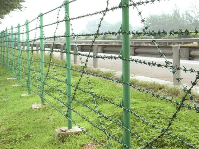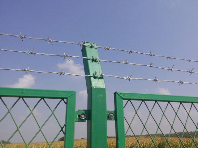 刺鐵絲柵欄是帶刺的鐵絲連接而成的防護(hù)隔離柵欄,刺鋼絲是低碳鋼絲經(jīng)過(guò)轉(zhuǎn)輪機(jī)編織旋轉(zhuǎn)而成單股或者雙股的帶刺鋼絲,刺鋼絲的表面處理方式分為:熱鍍鋅、電鍍鋅、熱浸塑三種方式。